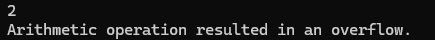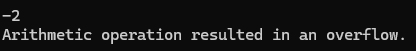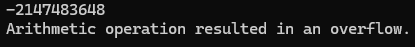 Console.WriteLine(e.Message); // output: Arithmetic operation resulted in an overflow.