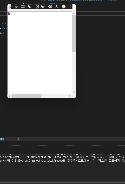 WPF 개발을 하다 보면 창에 표현되는 내부 UI가 창의 크기를 넘어가는 화면을 만들 때가 있습니다. 이럴 때 내부의 UI 크기는 그대로 두면서 스크롤이 필요해지는 상황이 생기는데 그 때 ScrollViewer를 사용하면 간단히 만들 수 있습니다.