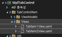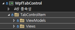 우선 프로젝트에 TabControlItem 폴더를 추가해주고 그 하위에도 ViewModels와 Views 폴더를 생성해줍니다.
