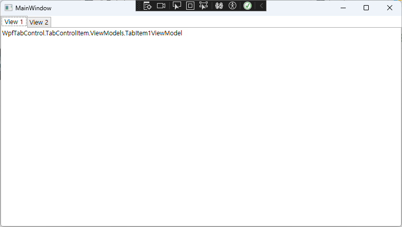 이것은 등록된 TabControl ItemsSource 속성에 바인딩 된 ObservableCollection<TabItemBaseViewModel> Tabs에 TabItem1ViewModel과 TabITem2ViewModel이 추가되어 있는데, 해당 ViewModel들이 어떤 View를 표시해야 할 지 모르기 때문에 위와 같이 표시된 겁니다.